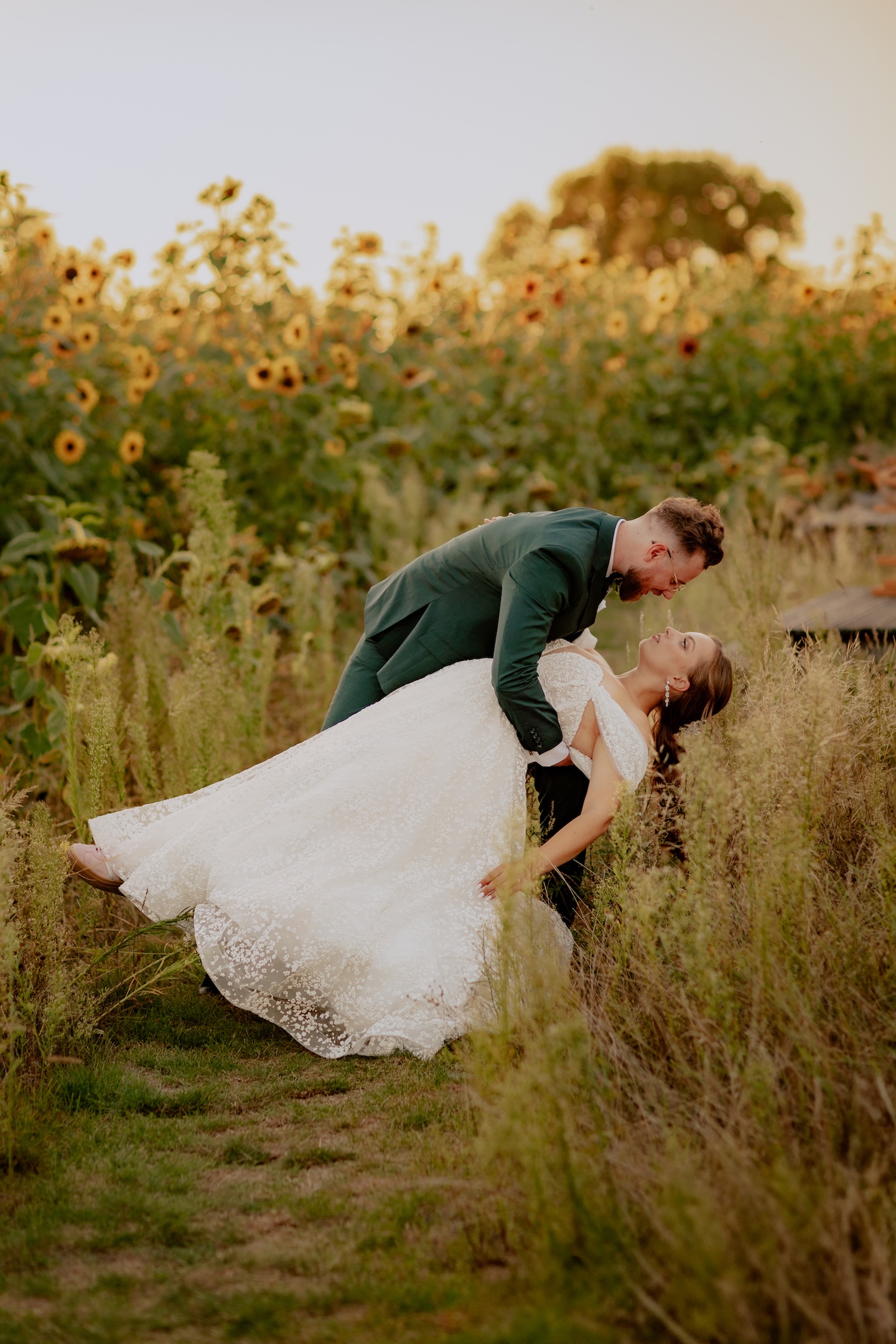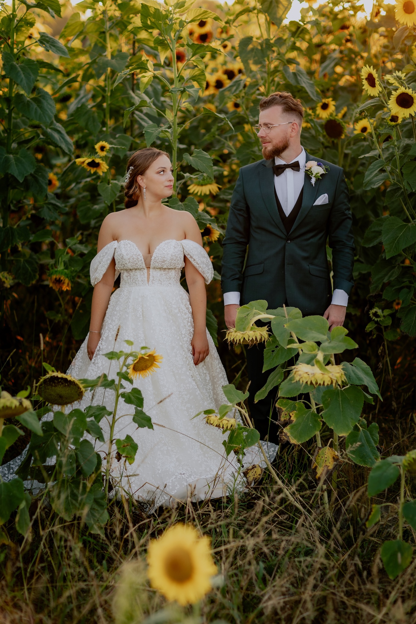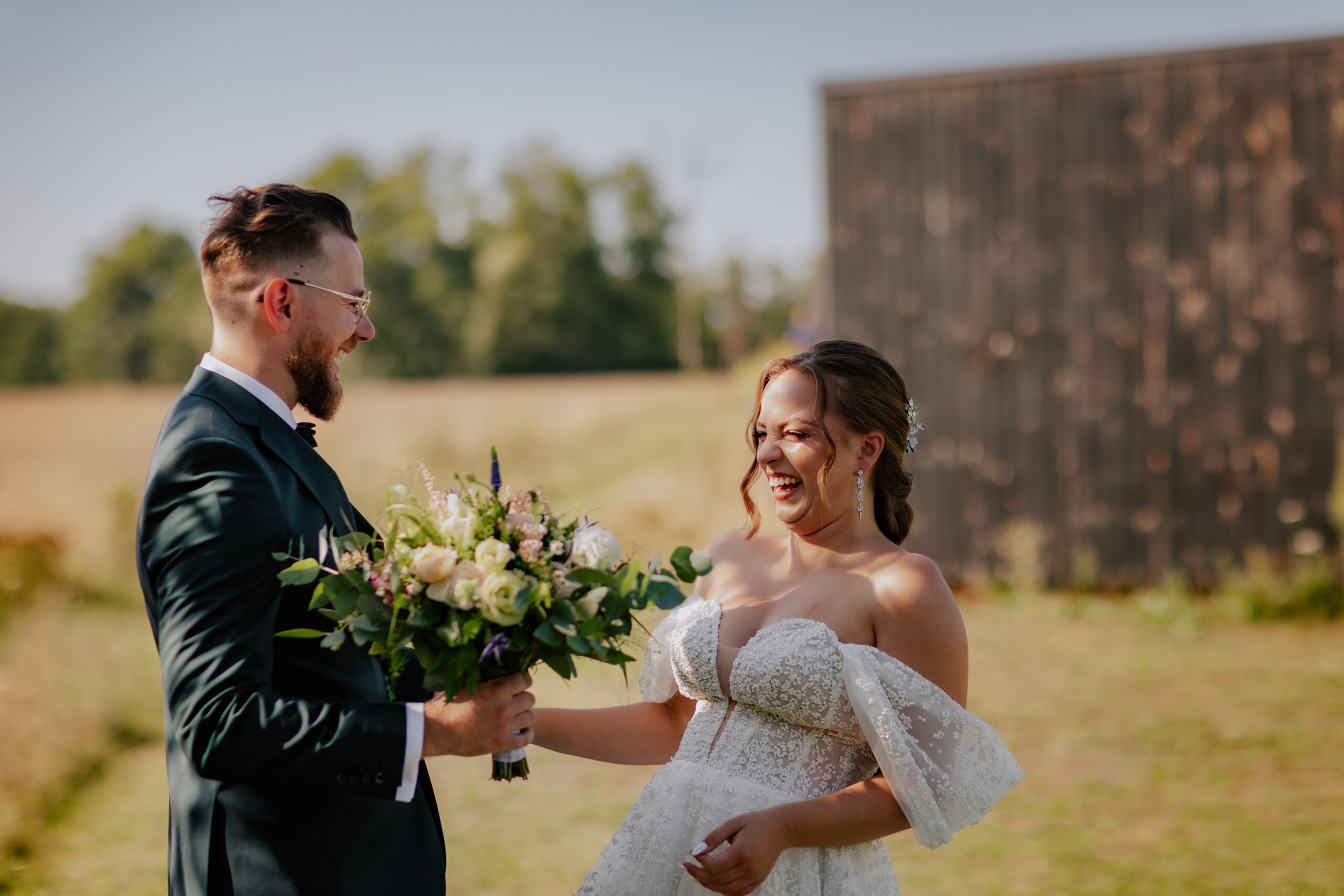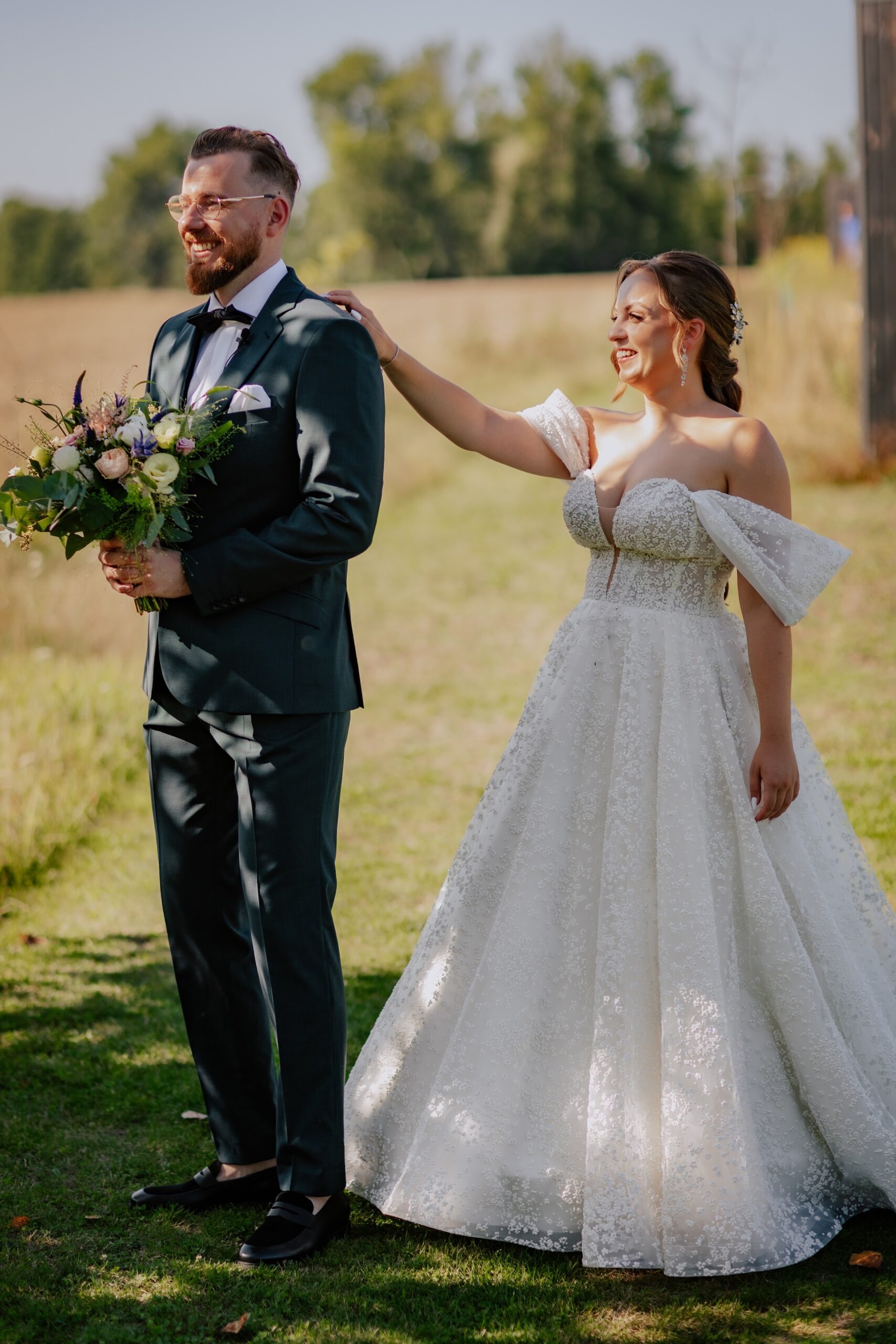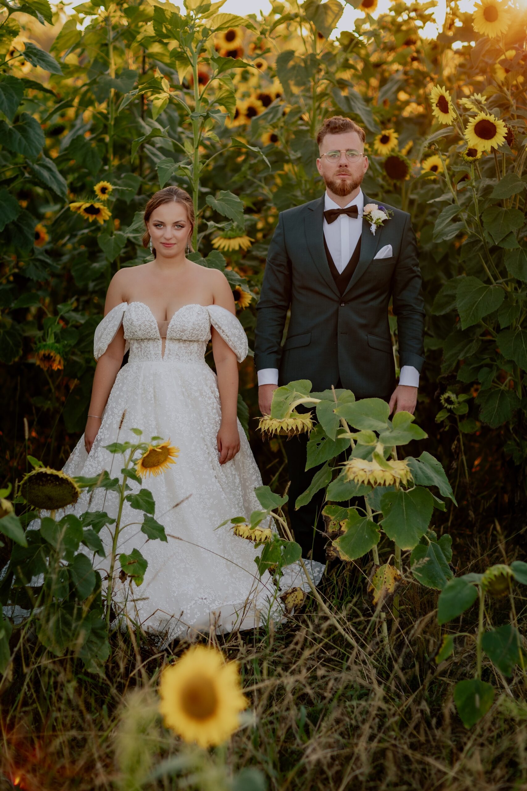 Śluby w plenerze, takie jak ten w Dyrkowie, oferują niezwykłe możliwości fotograficzne. Przyroda, przestrzeń i gra światła pozwalają stworzyć zdjęcia, które będą cieszyć przez lata. W tym miejscu, znaleźliśmy różnorodne miejsca, tła, dla każdego momentu tego dnia. First look, czy przygotowania do ślubu, miejsce na ceremonię czy krótki plener tuż po. Każde – wyjątkow, blisko natury. Drewniana zabudowa dodatkowo podkreślała sielski klimat. Natomiast, na punkcie pola soczyście żółtych słoneczników oszaleliśmy. Było cudownie buszować w tym miejscu, eksplorować je i szukać nowych pomysłów na kolejne kadry. Reportaż ślubny to nie tylko fotografie – to opowieść o Waszej miłości, jak ta piękna historia Mai i Mikołaja, którą mogliśmy wspólnie zapisać.