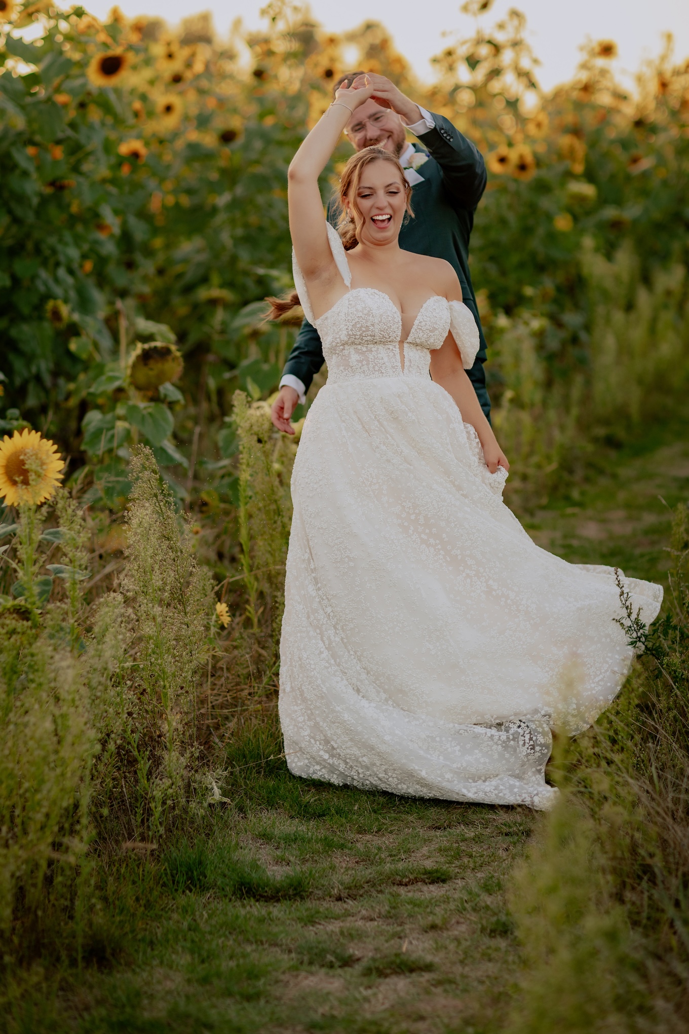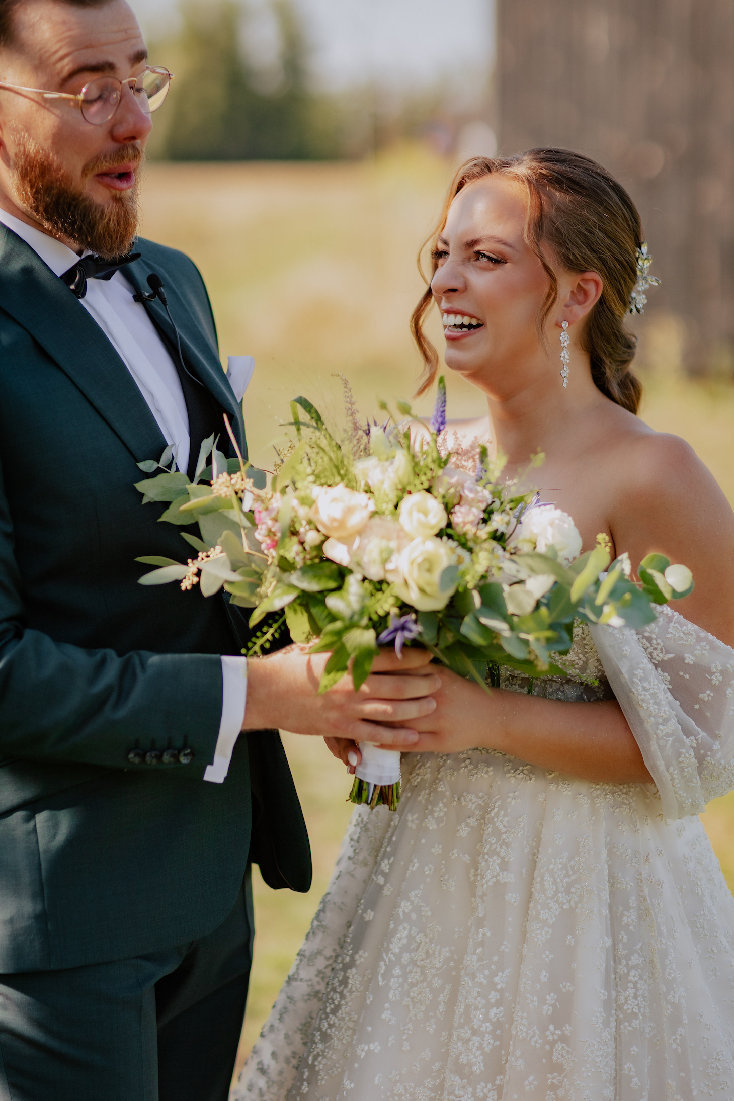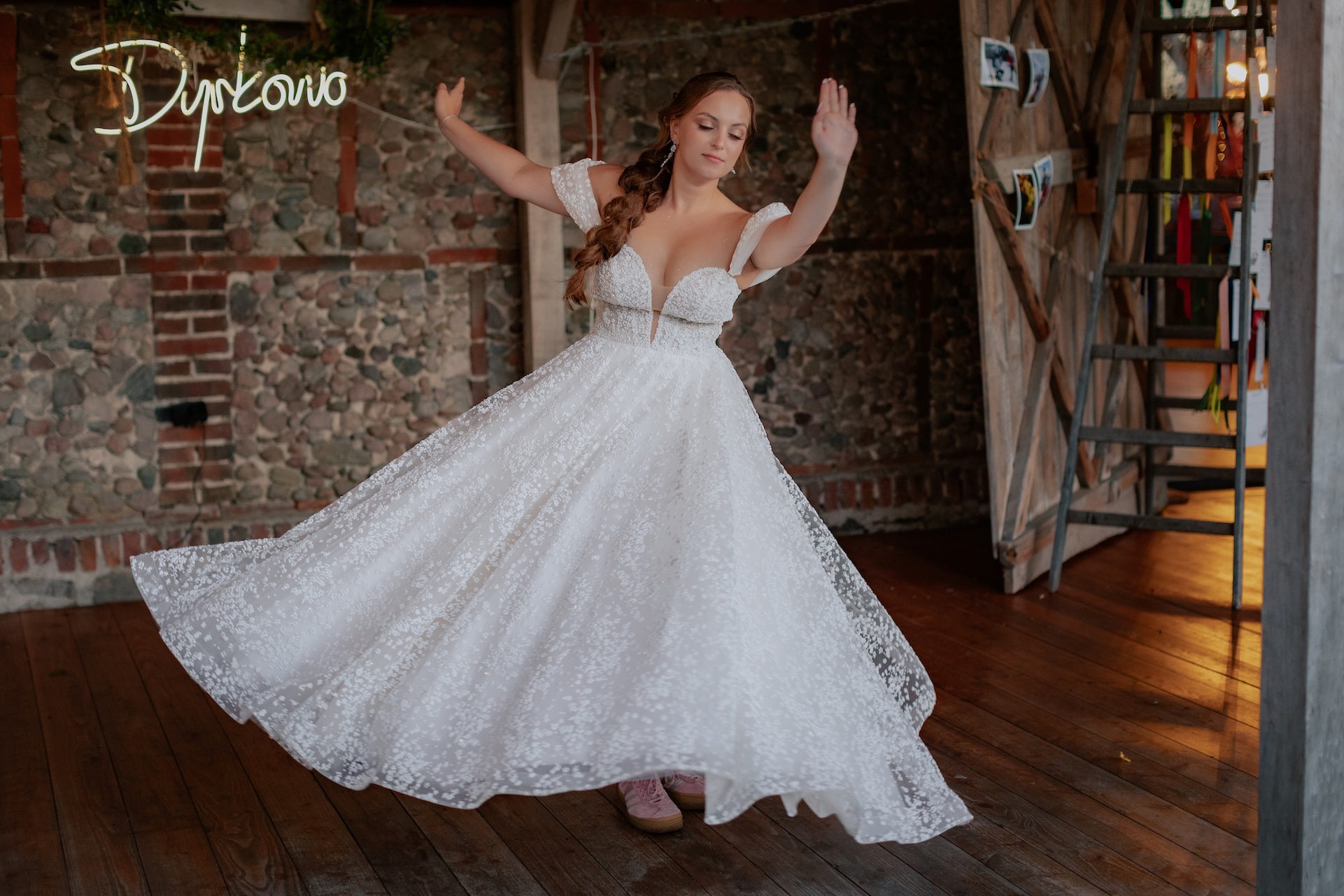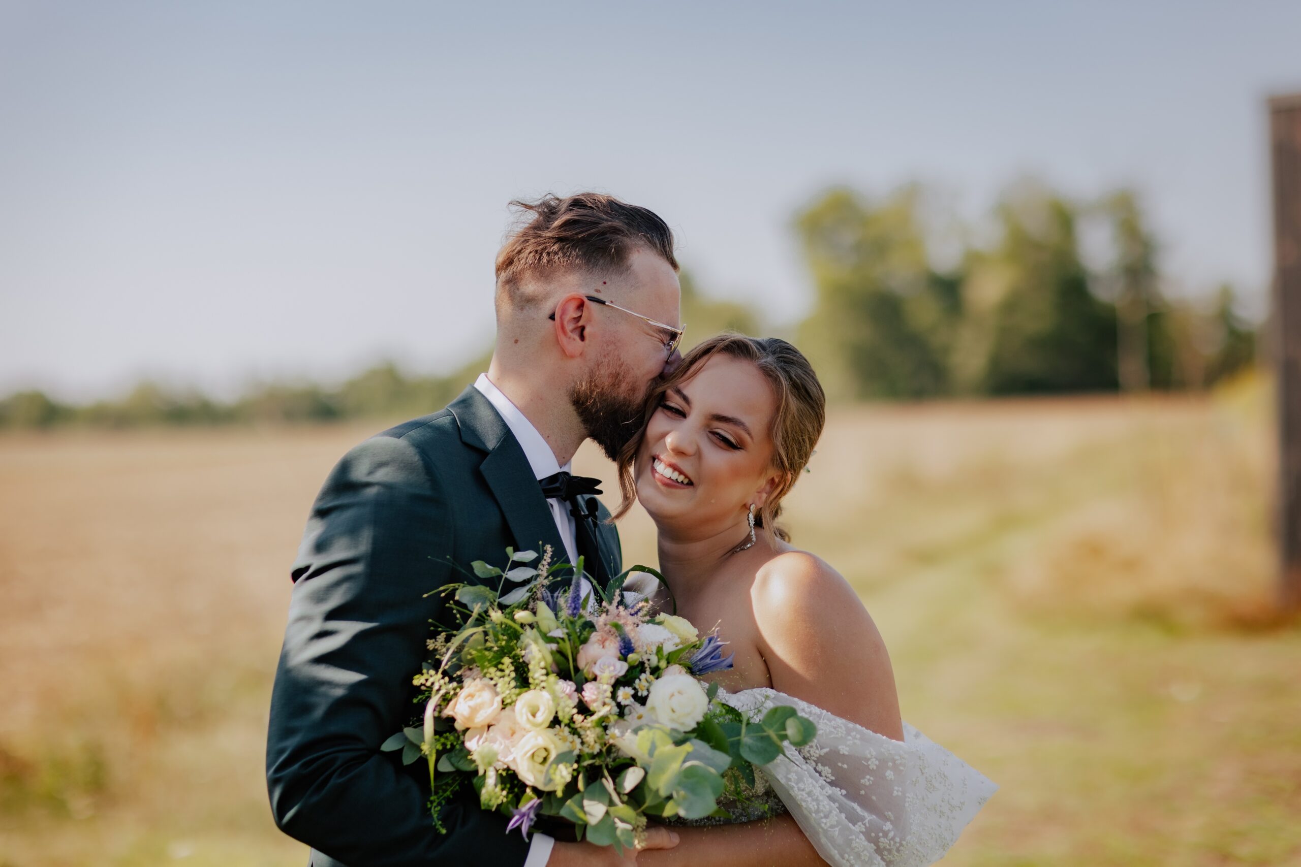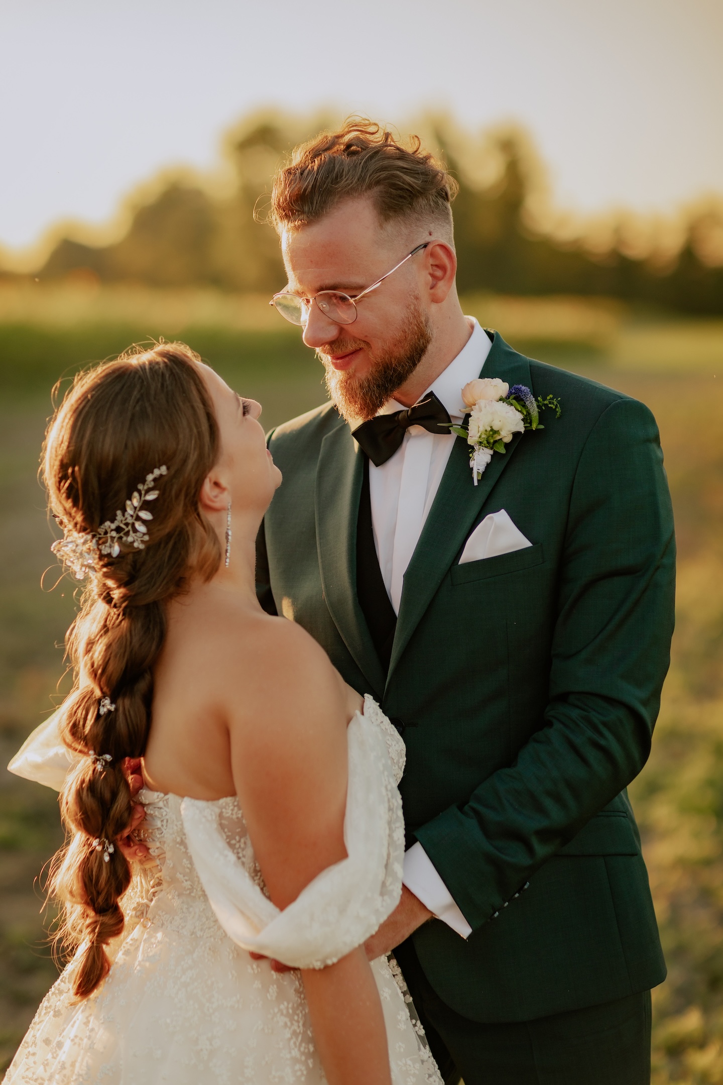 Śluby w plenerze, takie jak ten w Dyrkowie, oferują niezwykłe możliwości fotograficzne. Przyroda, przestrzeń i gra światła pozwalają stworzyć zdjęcia, które będą cieszyć przez lata. W tym miejscu, znaleźliśmy różnorodne miejsca, tła, dla każdego momentu tego dnia. First look, czy przygotowania do ślubu, miejsce na ceremonię czy krótki plener tuż po. Każde – wyjątkow, blisko natury. Drewniana zabudowa dodatkowo podkreślała sielski klimat. Natomiast, na punkcie pola soczyście żółtych słoneczników oszaleliśmy. Było cudownie buszować w tym miejscu, eksplorować je i szukać nowych pomysłów na kolejne kadry. Reportaż ślubny to nie tylko fotografie – to opowieść o Waszej miłości, jak ta piękna historia Mai i Mikołaja, którą mogliśmy wspólnie zapisać.