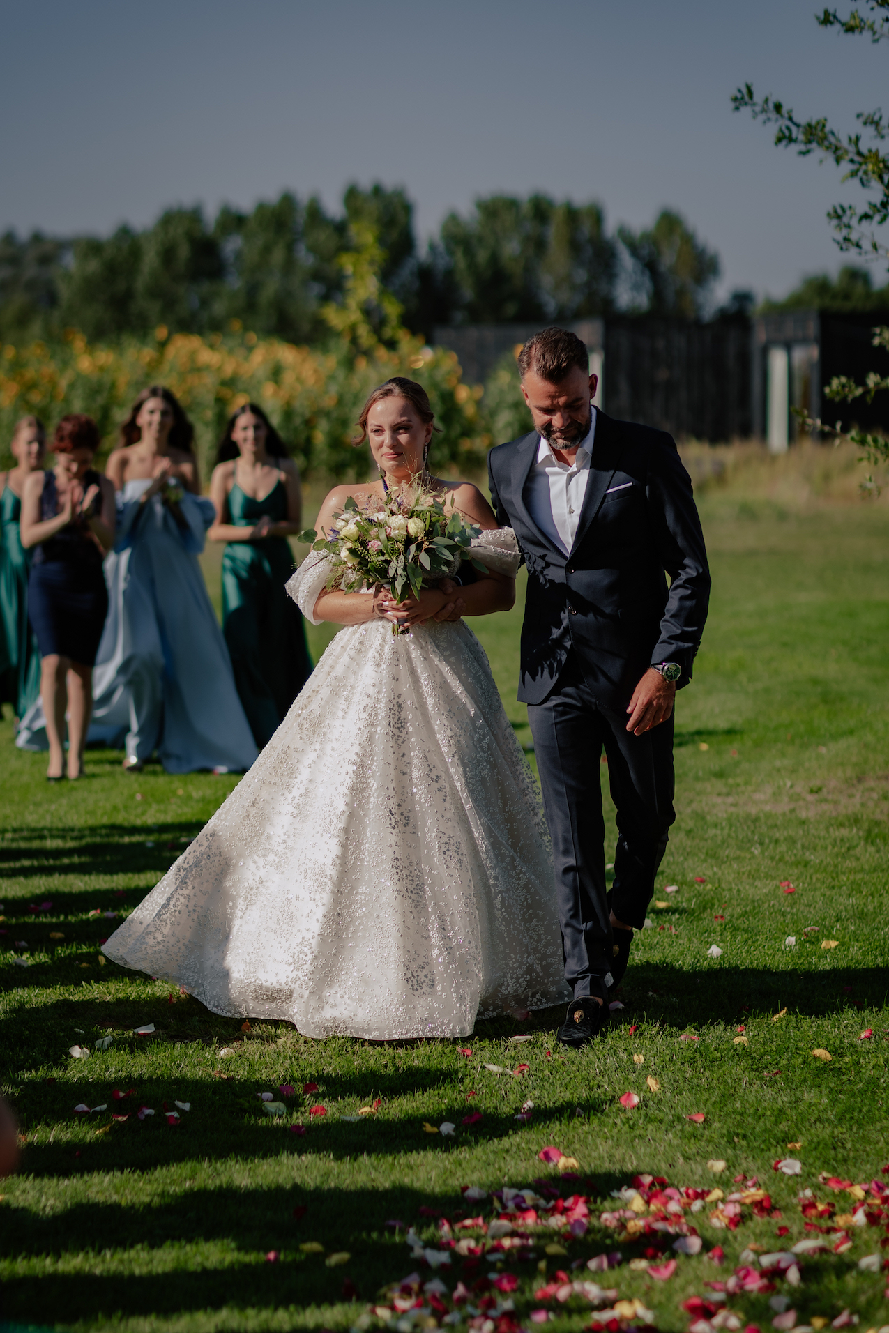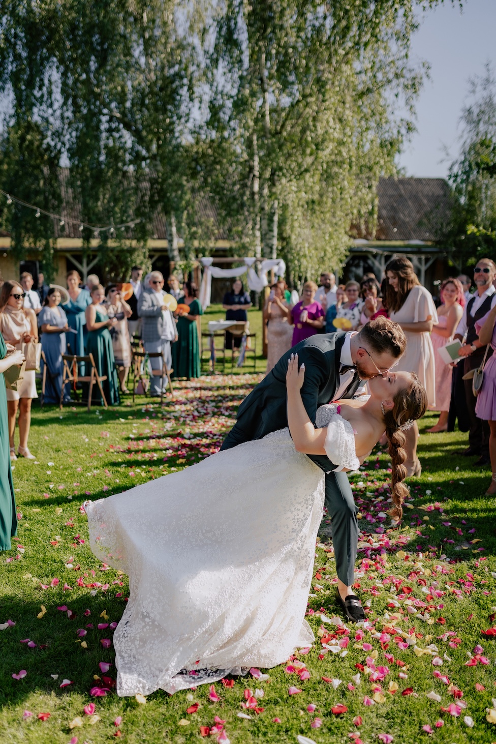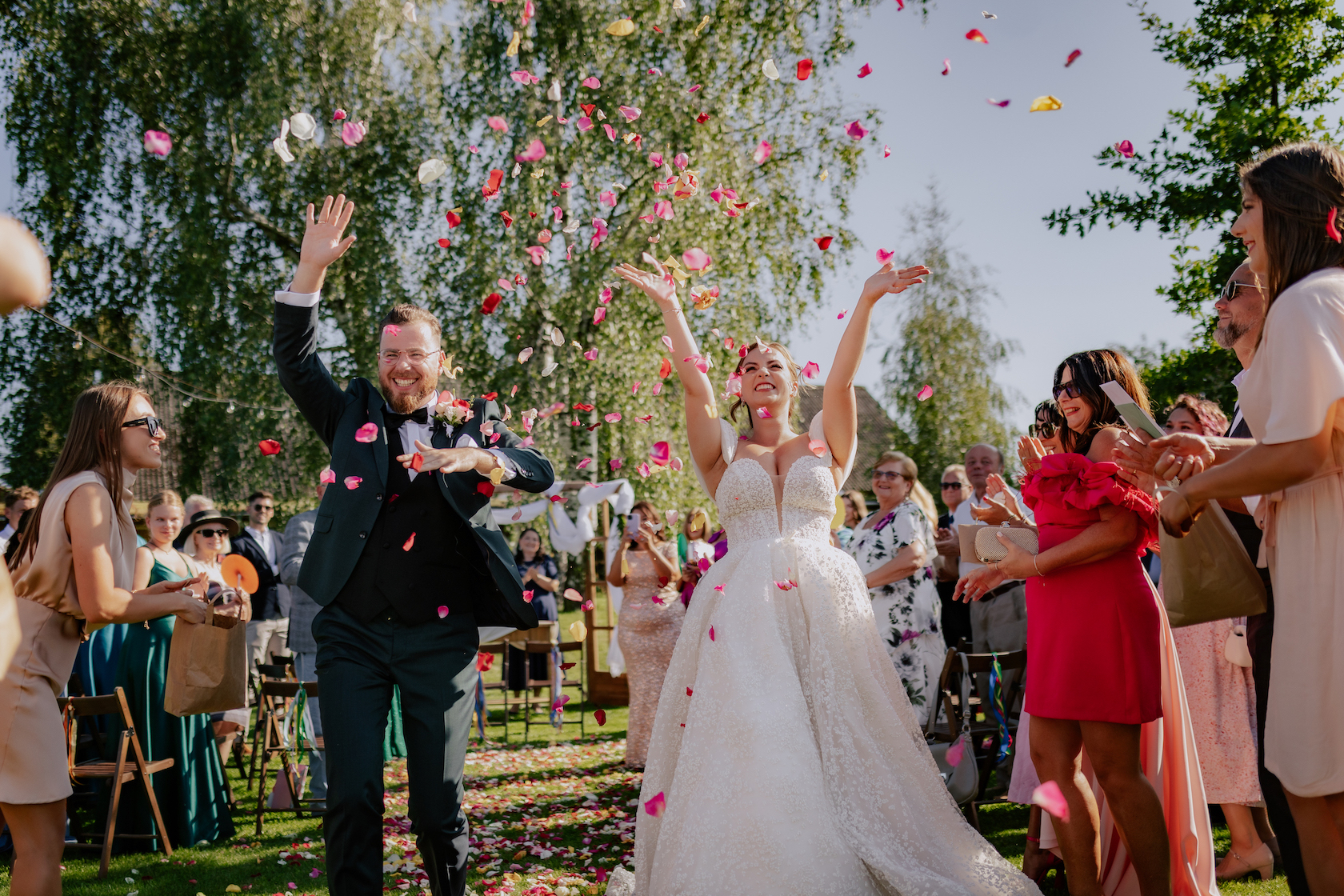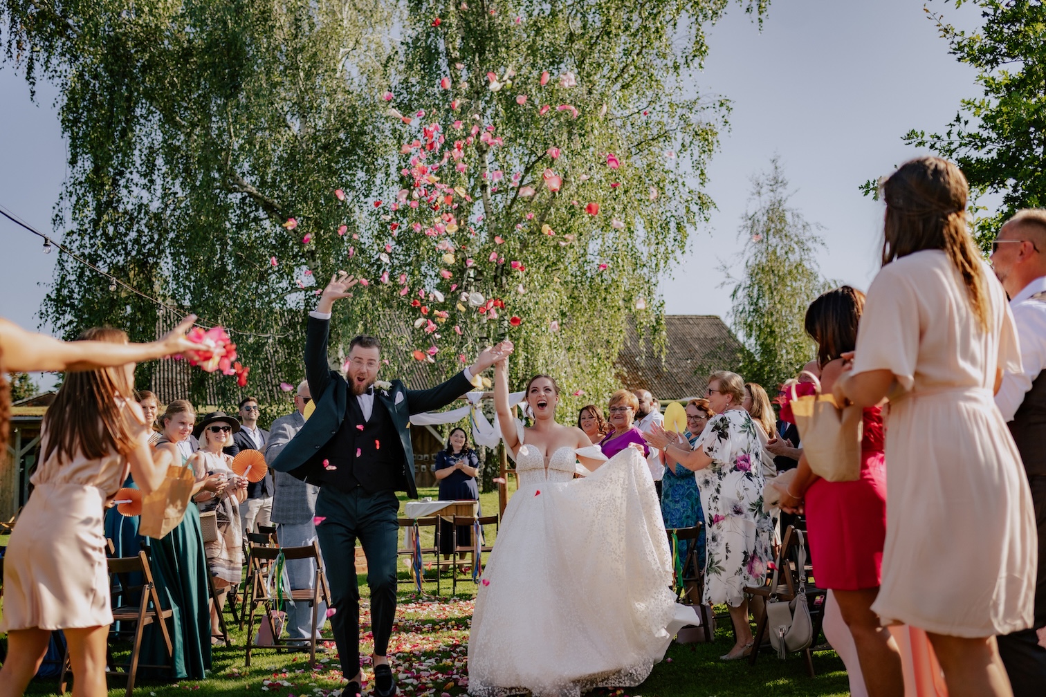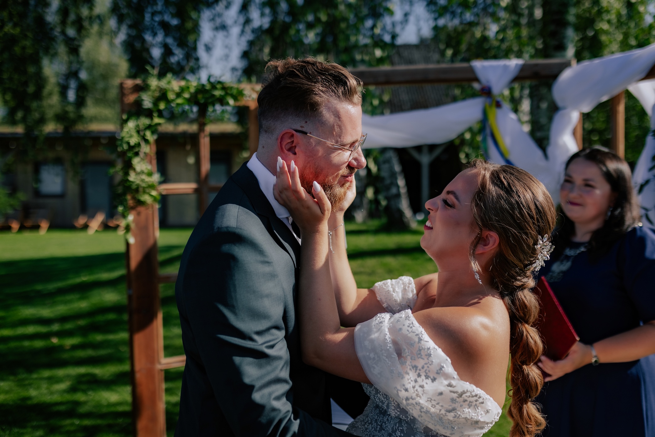 Śluby w plenerze, takie jak ten w Dyrkowie, oferują niezwykłe możliwości fotograficzne. Przyroda, przestrzeń i gra światła pozwalają stworzyć zdjęcia, które będą cieszyć przez lata. W tym miejscu, znaleźliśmy różnorodne miejsca, tła, dla każdego momentu tego dnia. First look, czy przygotowania do ślubu, miejsce na ceremonię czy krótki plener tuż po. Każde – wyjątkow, blisko natury. Drewniana zabudowa dodatkowo podkreślała sielski klimat. Natomiast, na punkcie pola soczyście żółtych słoneczników oszaleliśmy. Było cudownie buszować w tym miejscu, eksplorować je i szukać nowych pomysłów na kolejne kadry. Reportaż ślubny to nie tylko fotografie – to opowieść o Waszej miłości, jak ta piękna historia Mai i Mikołaja, którą mogliśmy wspólnie zapisać.