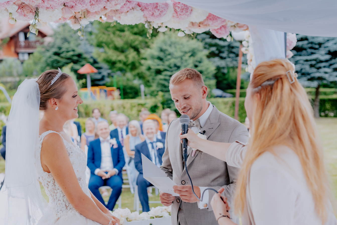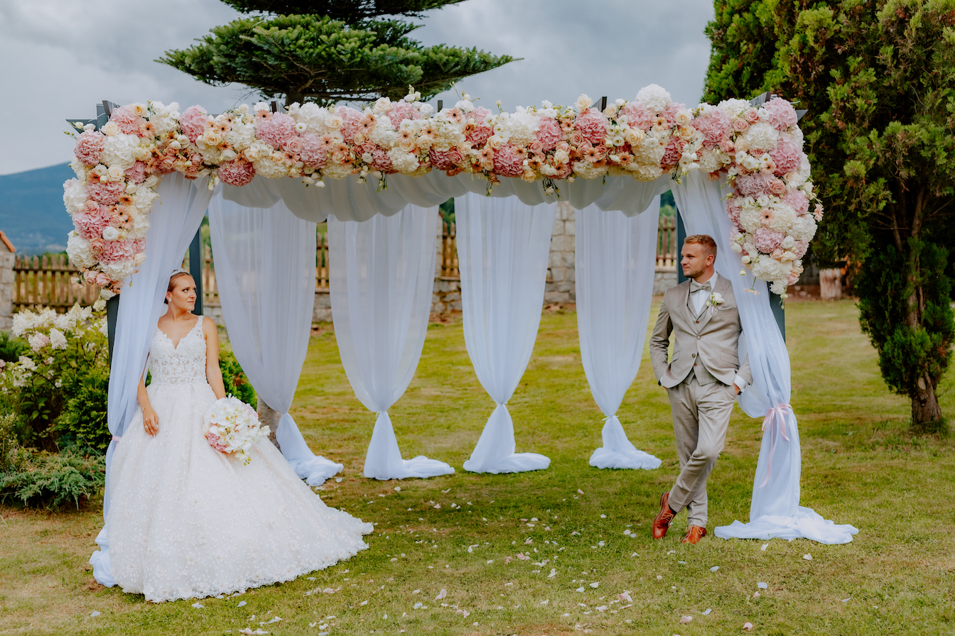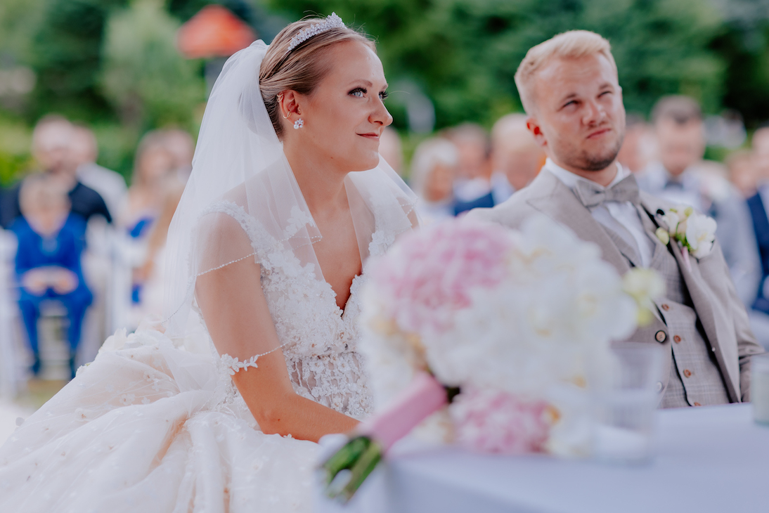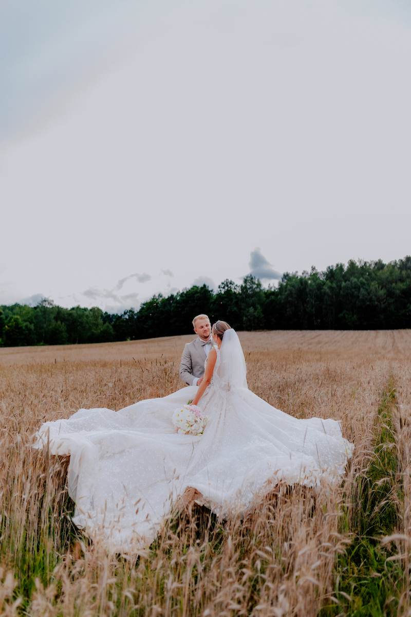 Para postawiła na harmonijne połączenie natury i klasyki, co uczyniło ich ślub wyjątkowym. Dodatkowo, niesamowite, klasyczne kompozycje kwiatowe w bieli i pudrowym różu podkreśliły subtelność i delikatność całego wydarzenia. Nasza fotografia ślubna uchwyciła piękno chwil – od czułych spojrzeń po romantyczną scenerię. Z pewnością, ceremonia w plenerze pozwoliła nam w pełni wykorzystać uroki tego miejsca i zamknąć całą uroczystość w niesamowitych kadrach… W trakcie tego dnia, znaleźliśmy też trochę czasu na spacer… bardzo kolorowy spacer polną drogą z gośćmi, a efekty możecie zobaczyć już poniżej.