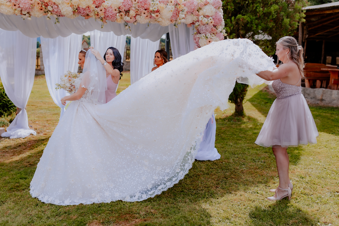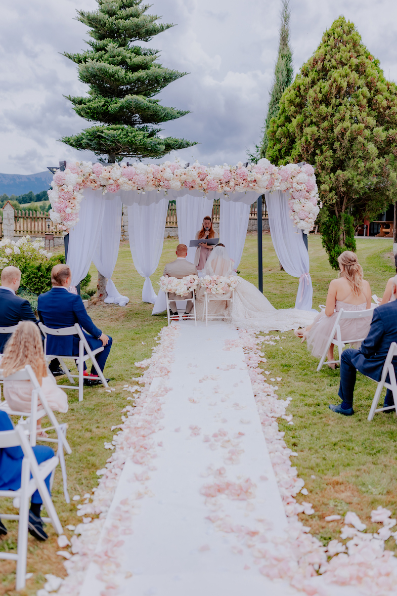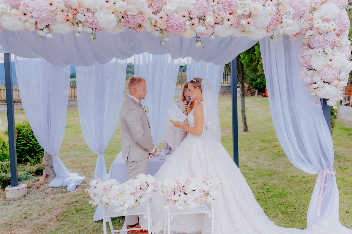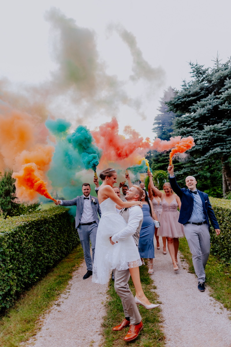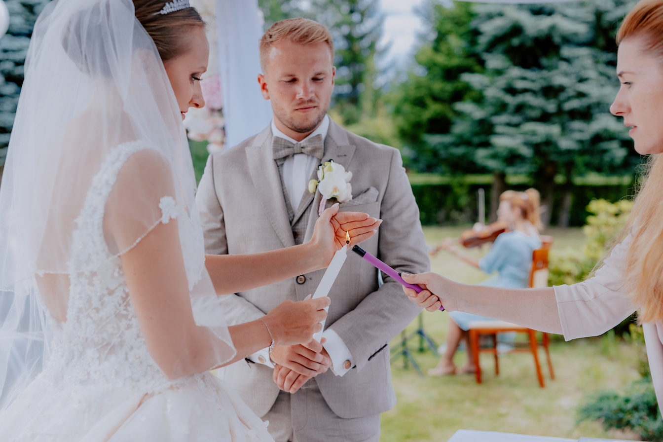 Para postawiła na harmonijne połączenie natury i klasyki, co uczyniło ich ślub wyjątkowym. Dodatkowo, niesamowite, klasyczne kompozycje kwiatowe w bieli i pudrowym różu podkreśliły subtelność i delikatność całego wydarzenia. Nasza fotografia ślubna uchwyciła piękno chwil – od czułych spojrzeń po romantyczną scenerię. Z pewnością, ceremonia w plenerze pozwoliła nam w pełni wykorzystać uroki tego miejsca i zamknąć całą uroczystość w niesamowitych kadrach… W trakcie tego dnia, znaleźliśmy też trochę czasu na spacer… bardzo kolorowy spacer polną drogą z gośćmi, a efekty możecie zobaczyć już poniżej.