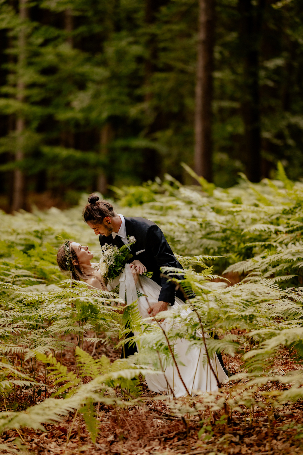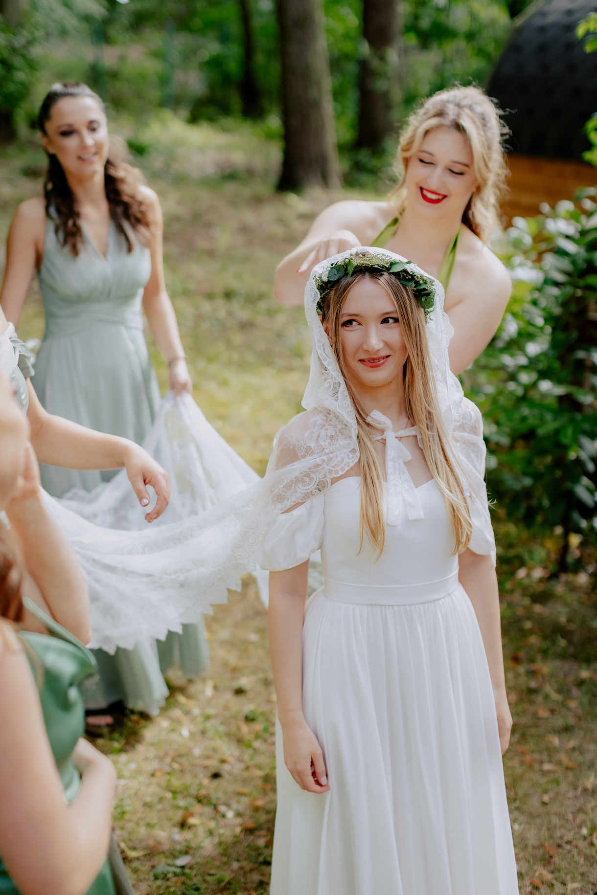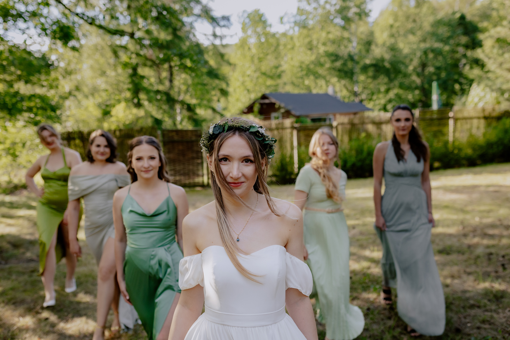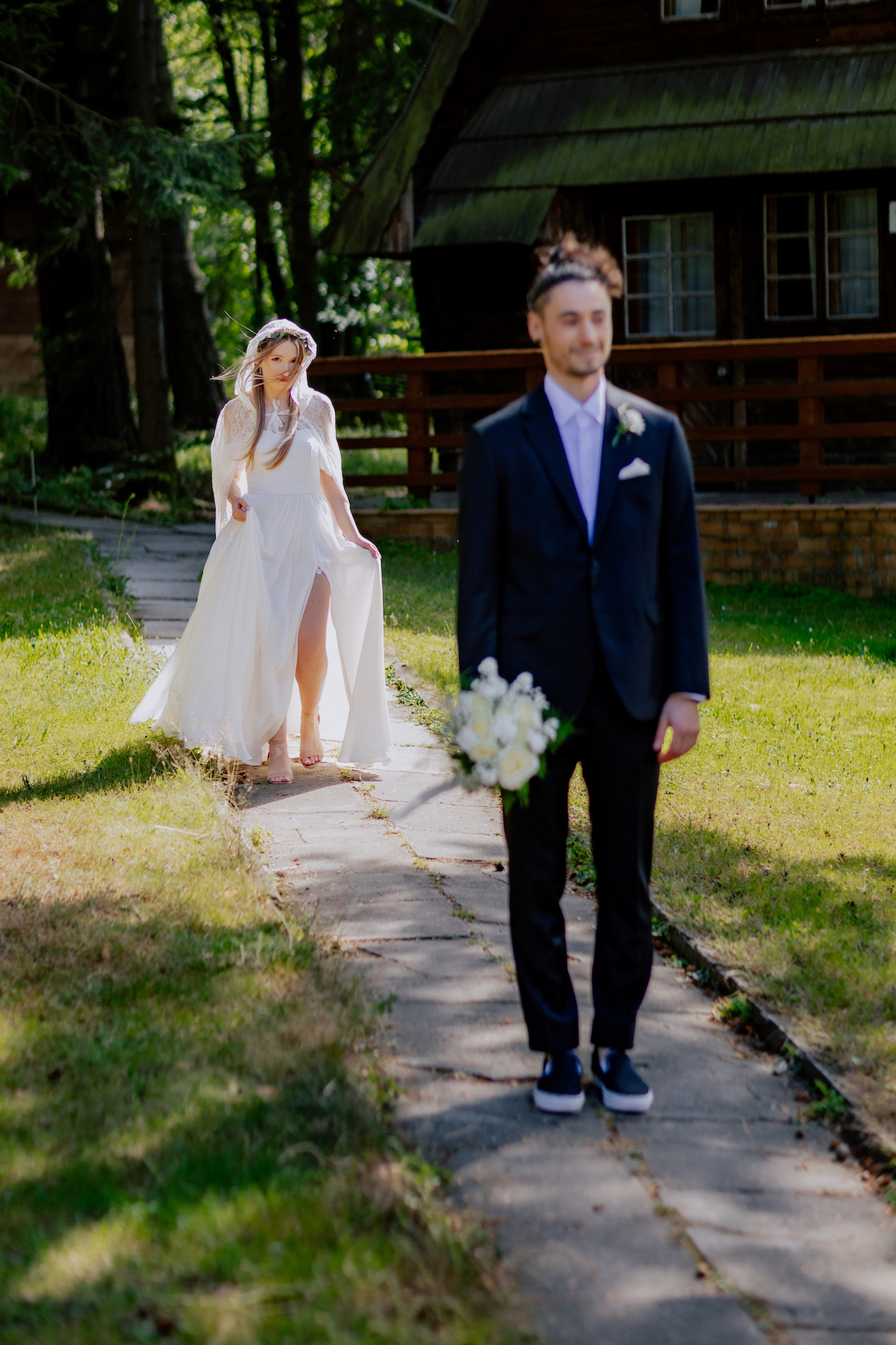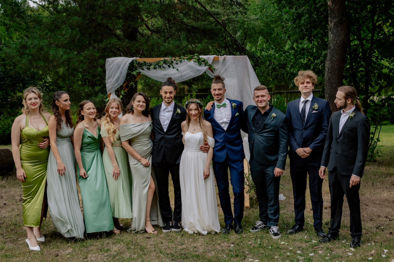 Fotografia ślubna w Mieszko i Jagienka to magia. Miejsce pełne uroku. To tu odbył się ślub Mai i Marcina, esencja natury i spontaniczności. Ceremonia w lesie, otoczona majestatycznymi drzewami i delikatnym śpiewem ptaków, była prawdziwie magiczna. Pośród lasu, przez który przebijało się naturalne światło uchwyciliśmy niezapomniane momenty pełne miłości, radości i autentyczności. Spacer pośród drzew, eksplorowanie lasu to była czysta przyjemność. Dodatkowo, za każdym zakrętem odnajdowaliśmy nowe miejsca na kolejne zdjęcia. Niesamowita polana pełna paproci skradła nasze serca. Dodatkowo, promienie słońca cały czas pomagały nam w chwytaniu kolejnych kadrów.