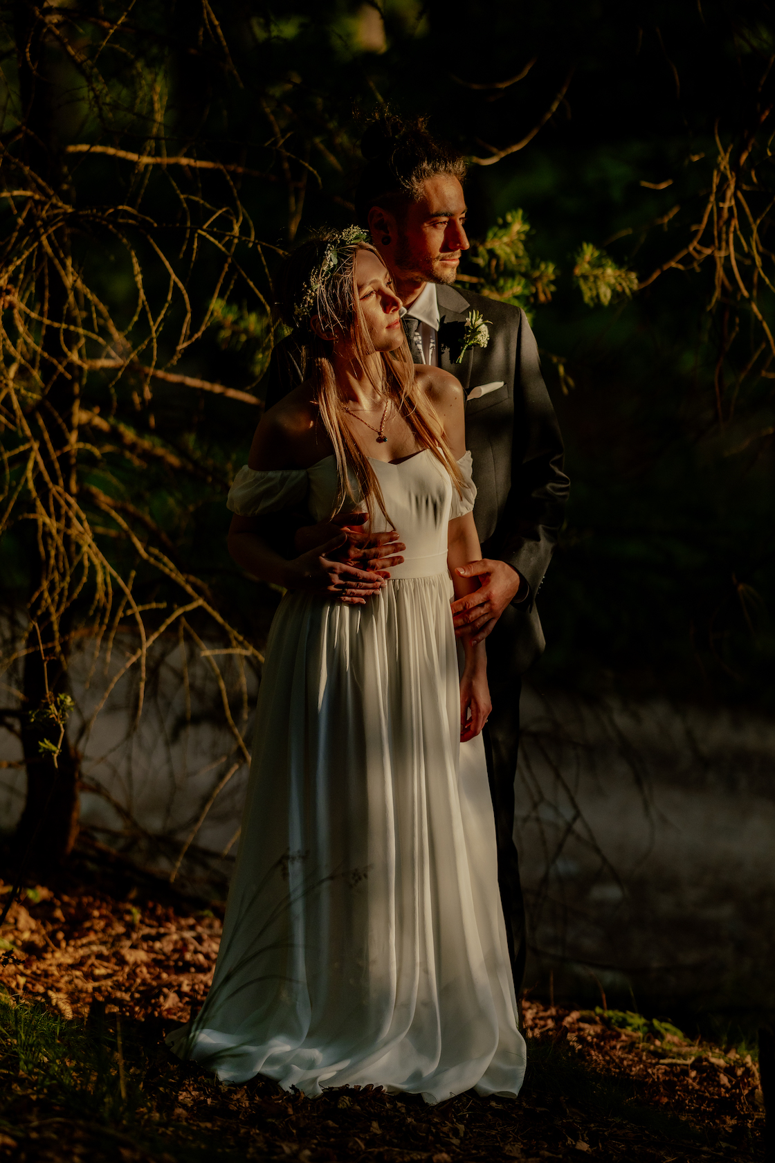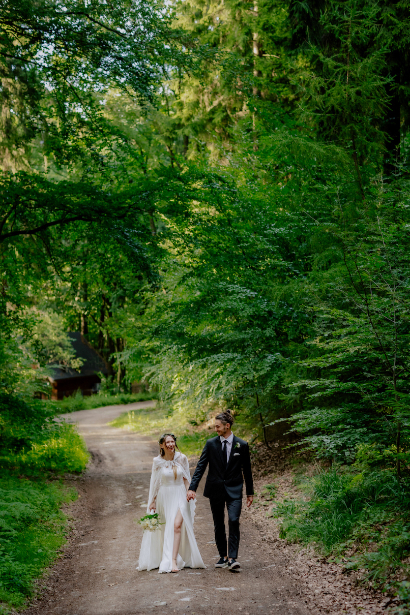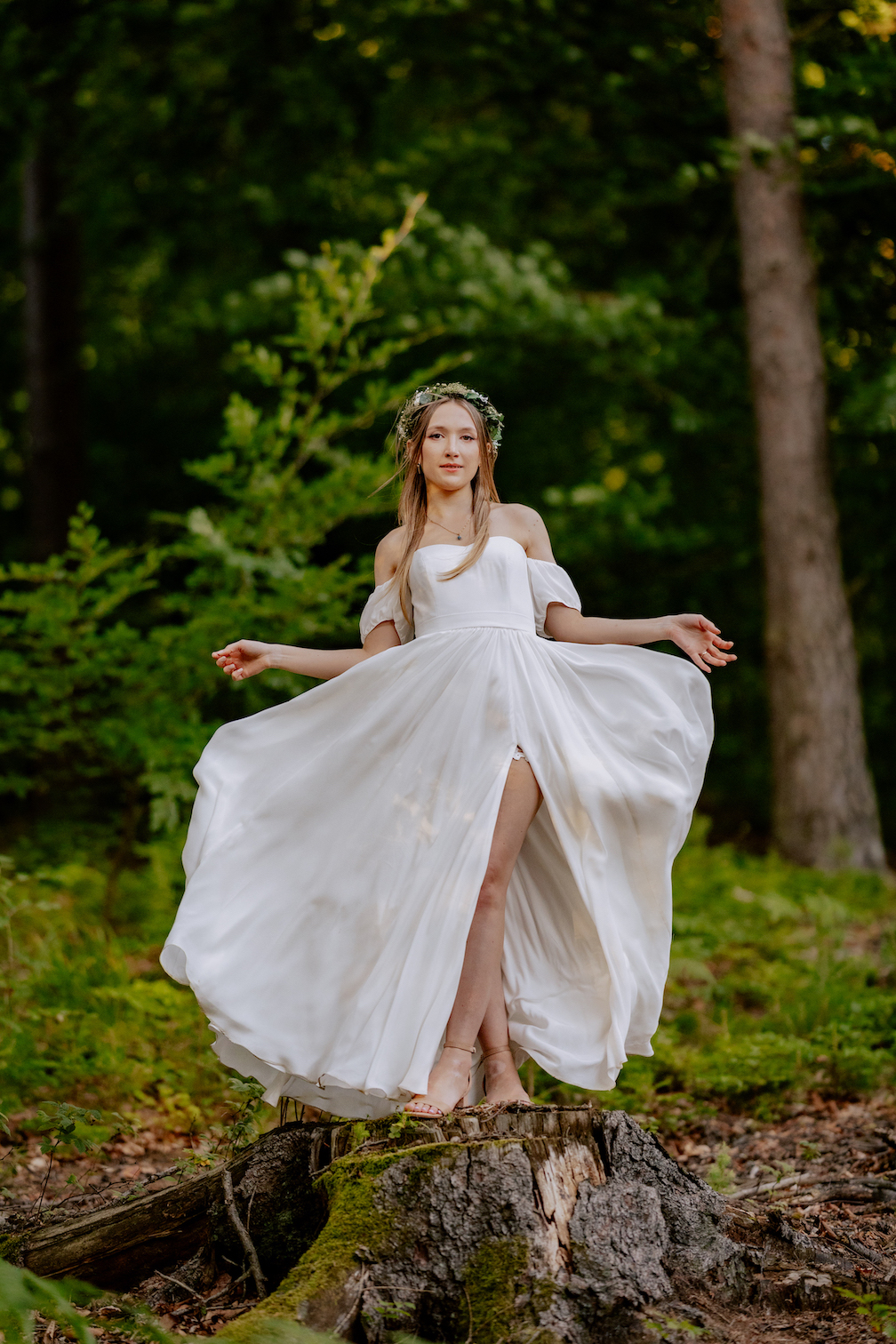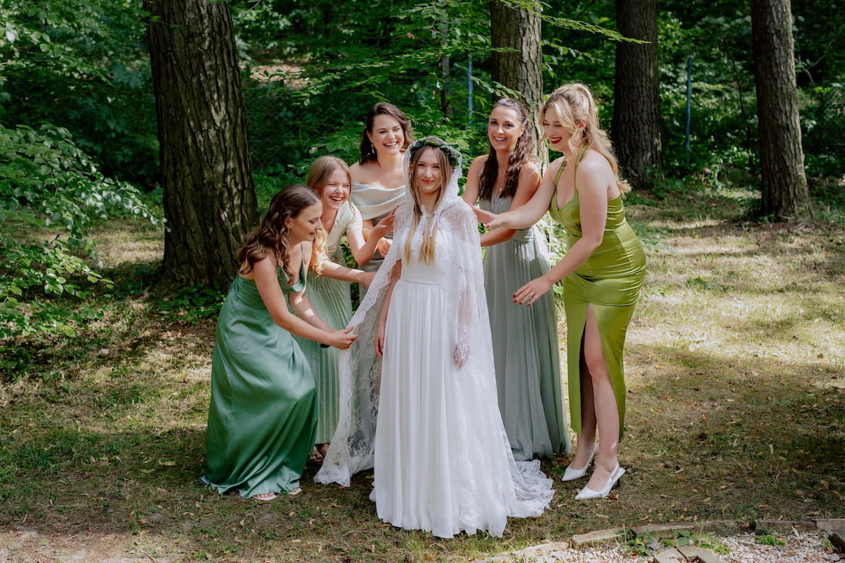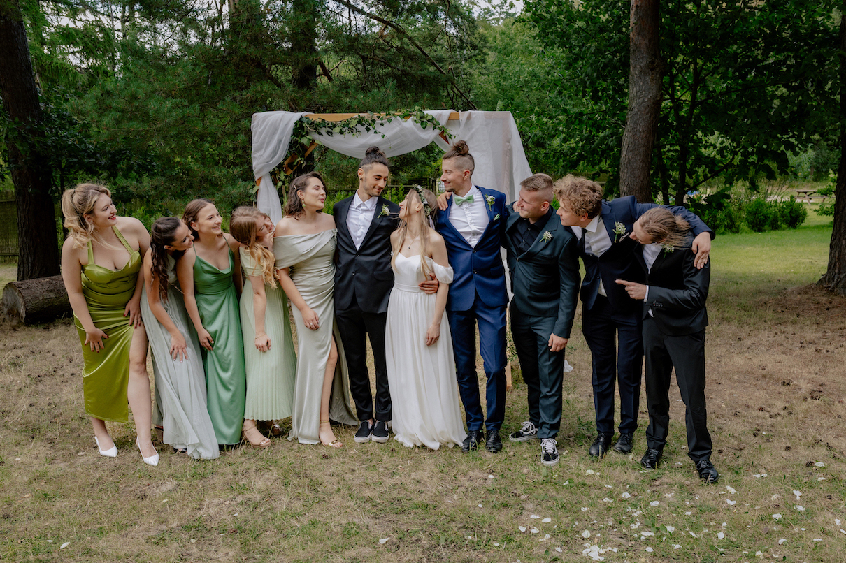 Fotografia ślubna w Mieszko i Jagienka to magia. Miejsce pełne uroku. To tu odbył się ślub Mai i Marcina, esencja natury i spontaniczności. Ceremonia w lesie, otoczona majestatycznymi drzewami i delikatnym śpiewem ptaków, była prawdziwie magiczna. Pośród lasu, przez który przebijało się naturalne światło uchwyciliśmy niezapomniane momenty pełne miłości, radości i autentyczności. Spacer pośród drzew, eksplorowanie lasu to była czysta przyjemność. Dodatkowo, za każdym zakrętem odnajdowaliśmy nowe miejsca na kolejne zdjęcia. Niesamowita polana pełna paproci skradła nasze serca. Dodatkowo, promienie słońca cały czas pomagały nam w chwytaniu kolejnych kadrów.