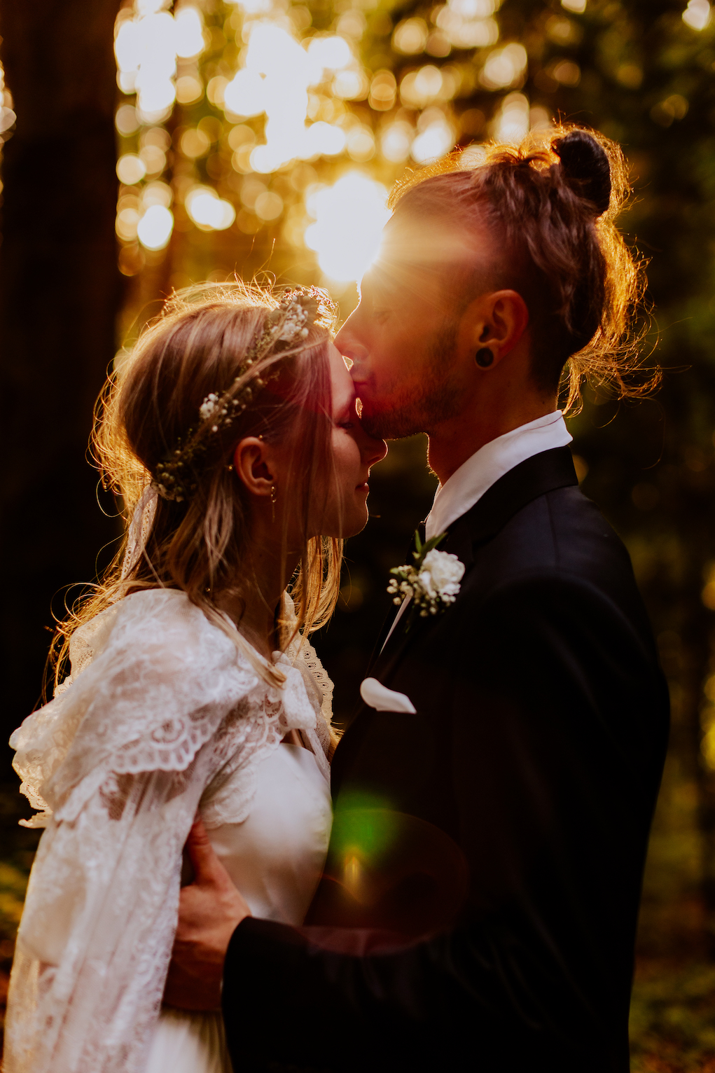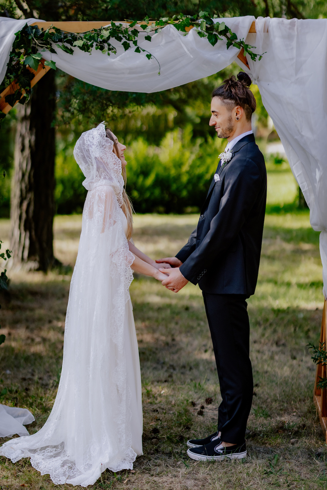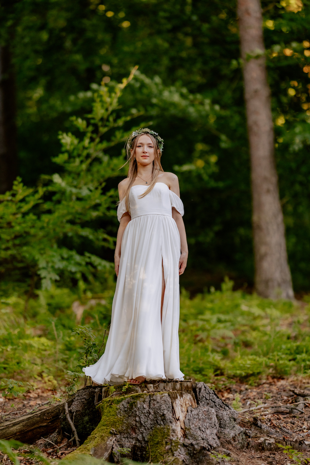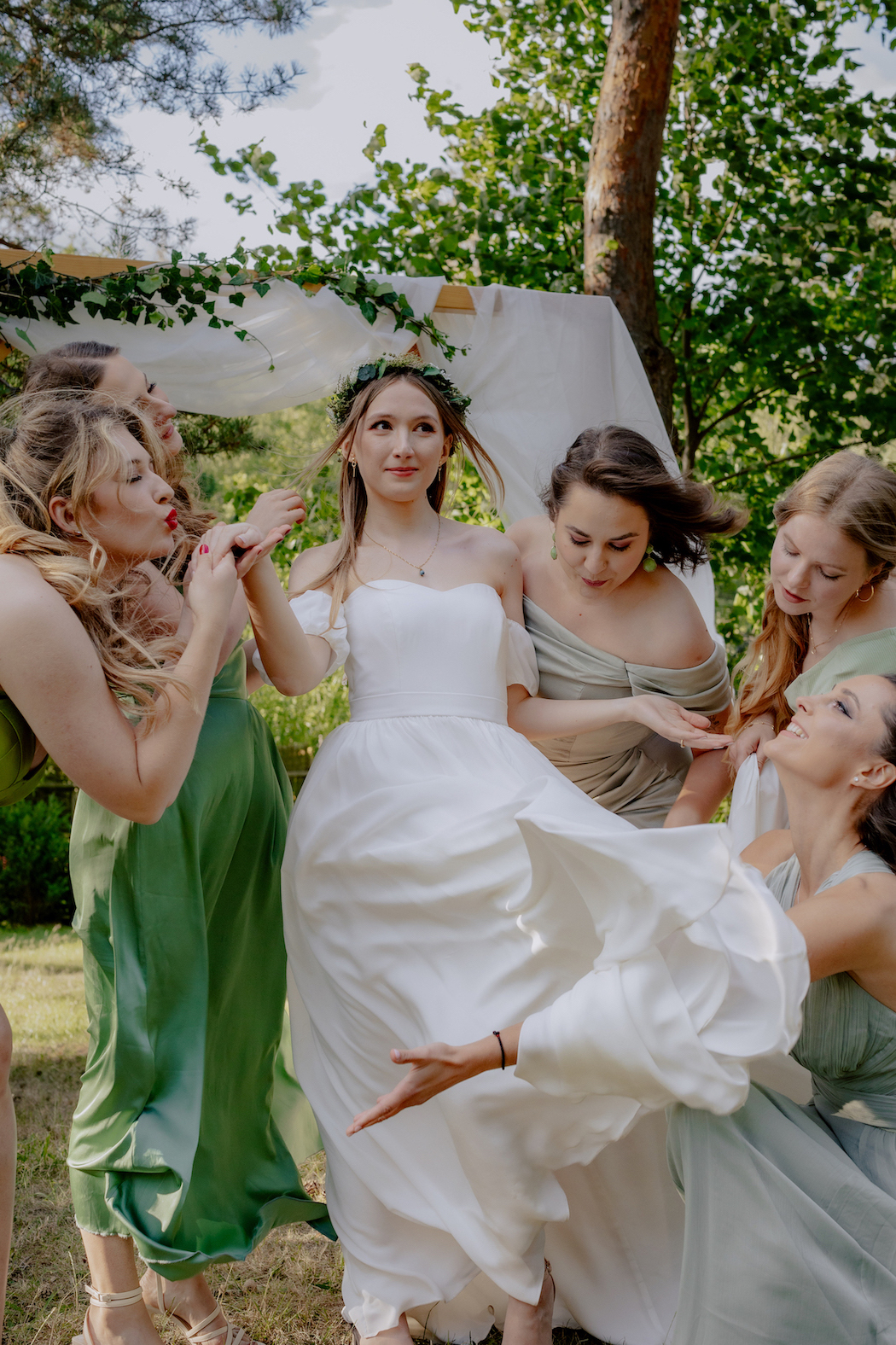 Fotografia ślubna w Mieszko i Jagienka to magia. Miejsce pełne uroku. To tu odbył się ślub Mai i Marcina, esencja natury i spontaniczności. Ceremonia w lesie, otoczona majestatycznymi drzewami i delikatnym śpiewem ptaków, była prawdziwie magiczna. Pośród lasu, przez który przebijało się naturalne światło uchwyciliśmy niezapomniane momenty pełne miłości, radości i autentyczności. Spacer pośród drzew, eksplorowanie lasu to była czysta przyjemność. Dodatkowo, za każdym zakrętem odnajdowaliśmy nowe miejsca na kolejne zdjęcia. Niesamowita polana pełna paproci skradła nasze serca. Dodatkowo, promienie słońca cały czas pomagały nam w chwytaniu kolejnych kadrów.