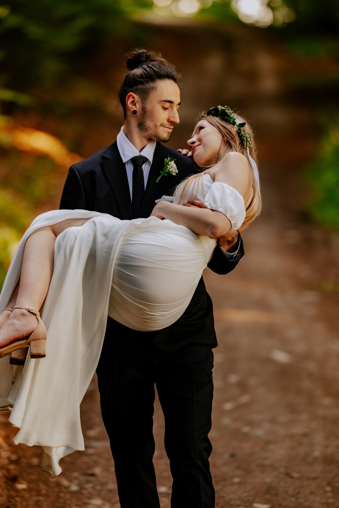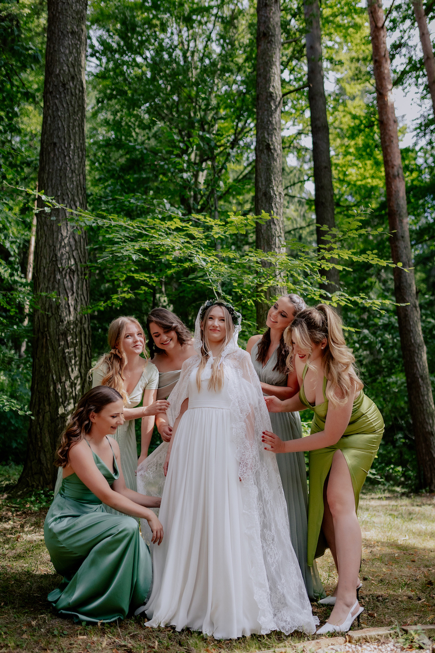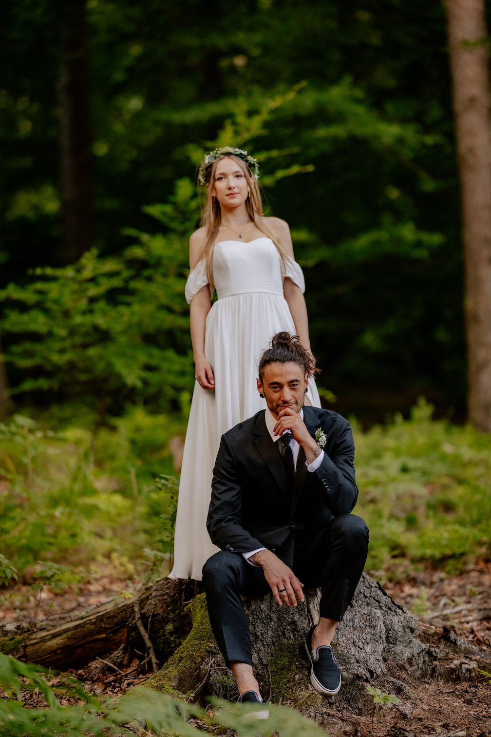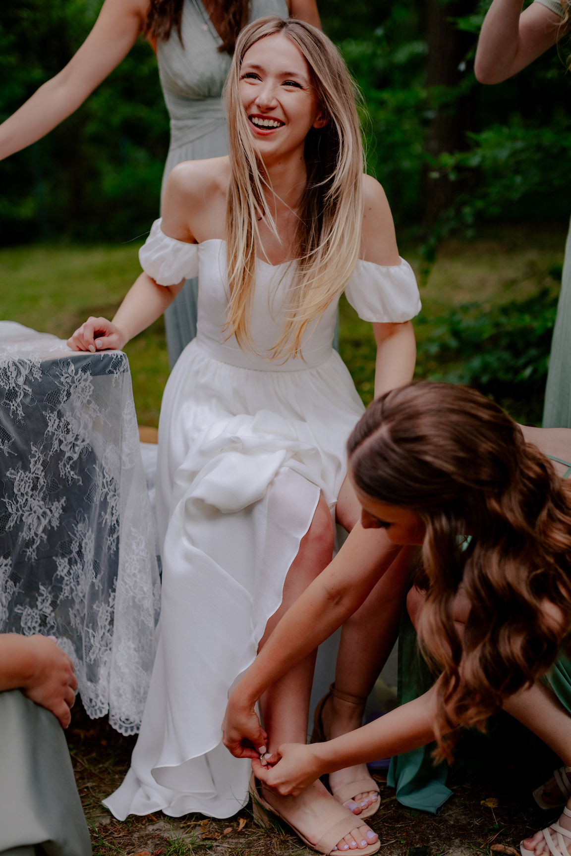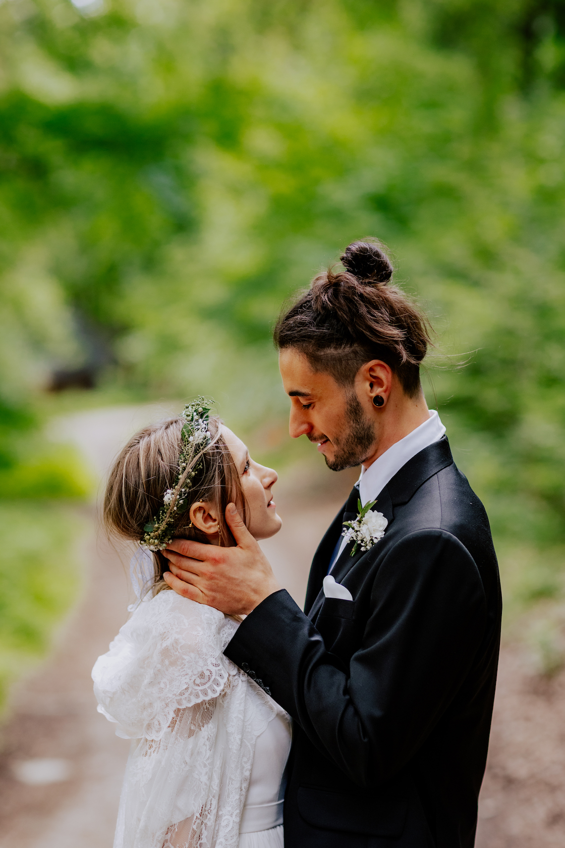 Fotografia ślubna w Mieszko i Jagienka to magia. Miejsce pełne uroku. To tu odbył się ślub Mai i Marcina, esencja natury i spontaniczności. Ceremonia w lesie, otoczona majestatycznymi drzewami i delikatnym śpiewem ptaków, była prawdziwie magiczna. Pośród lasu, przez który przebijało się naturalne światło uchwyciliśmy niezapomniane momenty pełne miłości, radości i autentyczności. Spacer pośród drzew, eksplorowanie lasu to była czysta przyjemność. Dodatkowo, za każdym zakrętem odnajdowaliśmy nowe miejsca na kolejne zdjęcia. Niesamowita polana pełna paproci skradła nasze serca. Dodatkowo, promienie słońca cały czas pomagały nam w chwytaniu kolejnych kadrów.