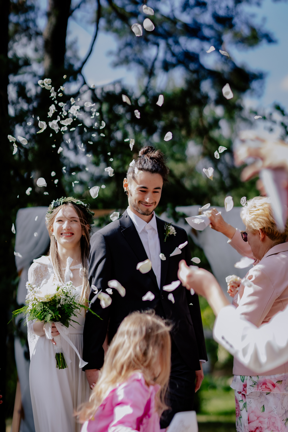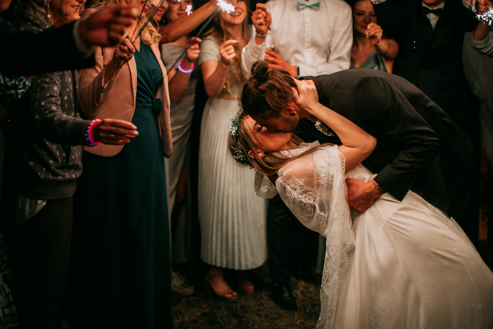 Maja i Marcin to para, która zachwyca swoją naturalnością i energią. Delikatna uroda Mai idealnie współgrała z subtelną suknią i wiankiem upiętym we włosy. Natomiast, największym zaskoczeniem tego dnia był jednak Marcin… żyliśmy w przekonaniu, że widzieliśmy już wszystko, ale moment, w którym Pan Młody robił Bunny Hopa na środku parkietu pokazał nam, że jeszcze wiele przed nami…